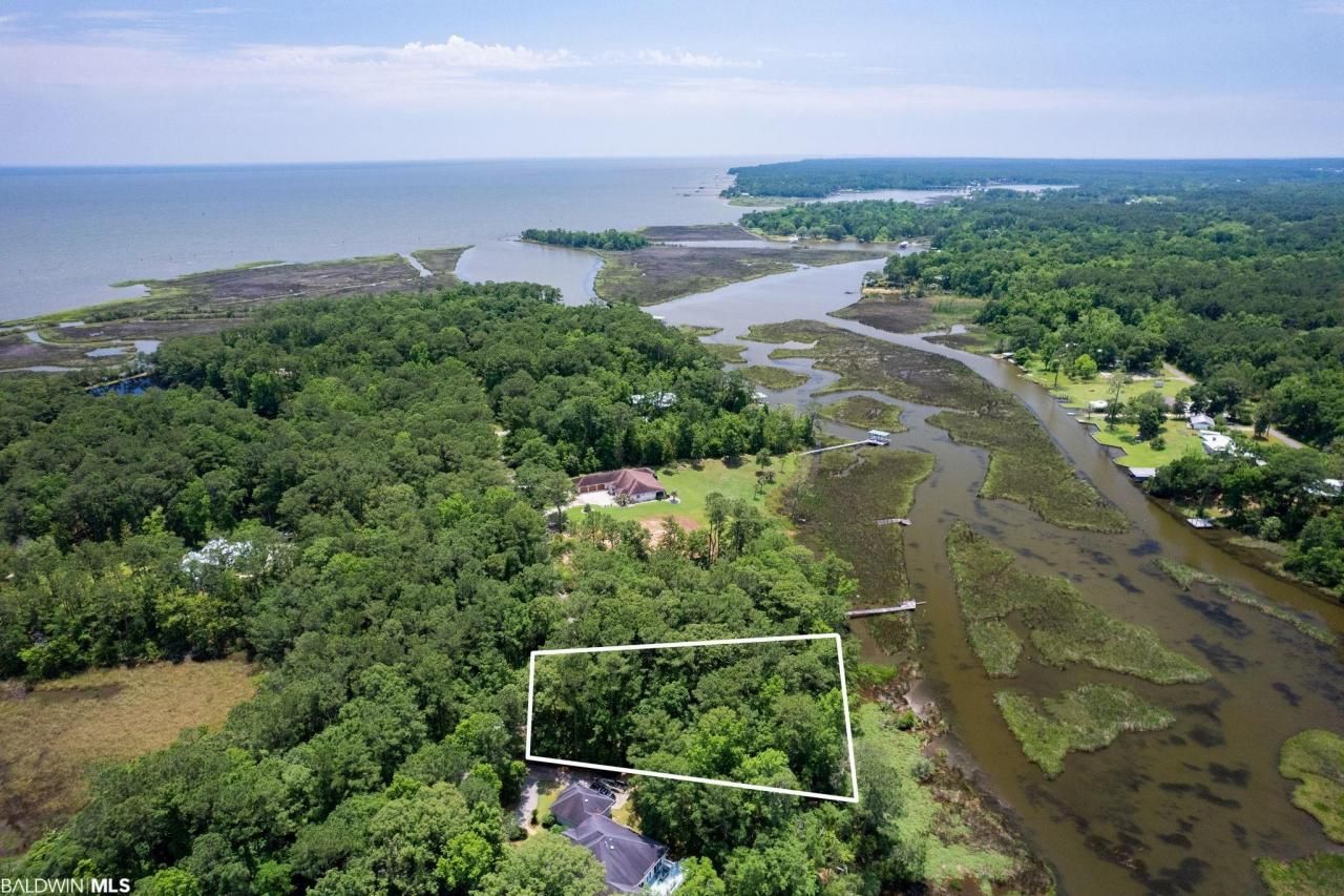 Beautiful Lot on Old Fowl River. Just under 1 acre with high elevation and over 190 ft of waterfront. Build your home and enjoy the river views in the upscale and private neighborhood. Here is your opportunity to play and live in this boater's and fisherman's paradise! Buyer to verify all information during due diligence.